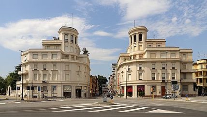 Continuate in senso orario, prendete il sottopasso poco dopo i giardini attraversare il semaforo e risalire su piazzale della Vittoria difronte a corso della repubblica, osservando le due palazzine gemelle
