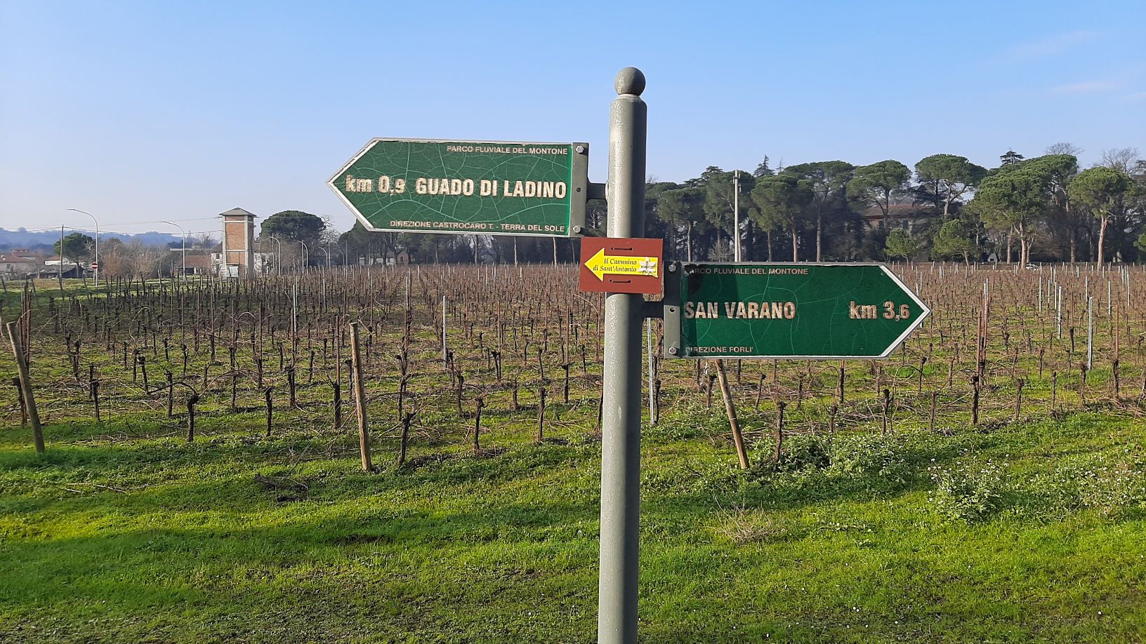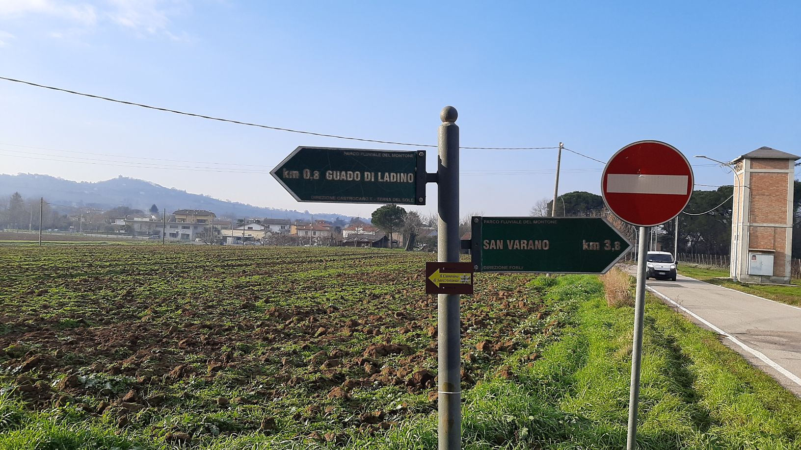 Seguite la direzione "Ponte Ladino" Km 1,34 fino al bivio dove incontrerete i cartelli "San Varano" e "Cammino di Sant'Antonio"