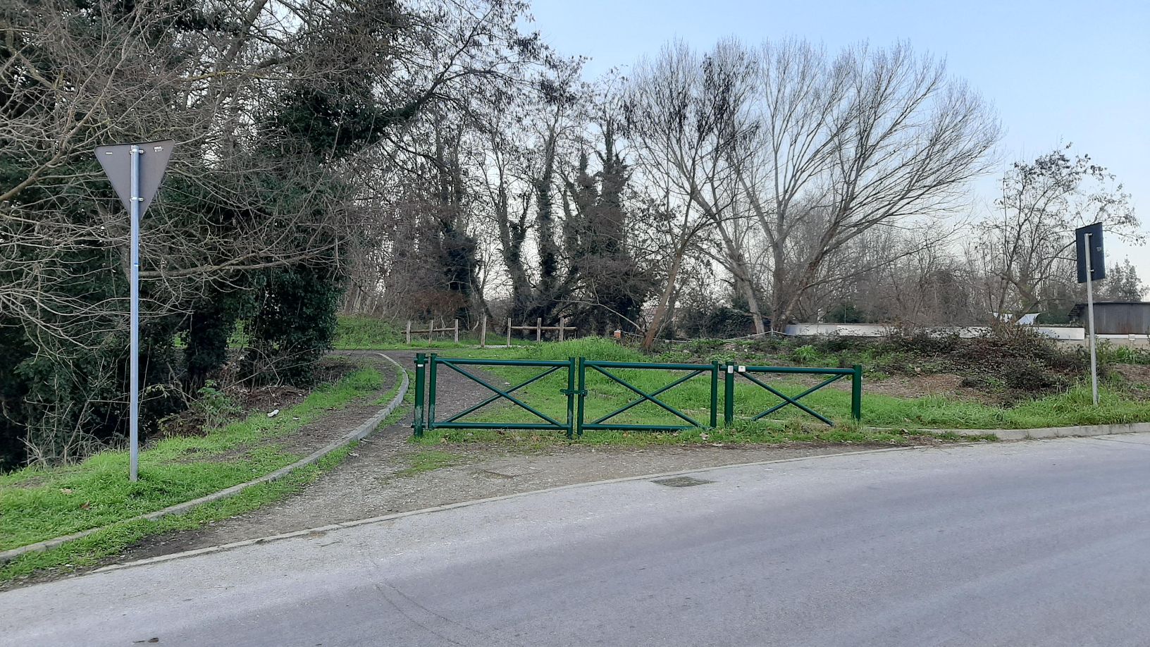 Appena oltrepassato il cancello girate a sinistra, inboccate una via che termina con una piccola rampa, vi troverete in un parcheggio, uscite dal parcheggio lentamente percorrendo via delle donne della Costituzione, quando la strada fa una leggera curva verso destra, alla vostra sinitra troverete una ringhiera verde