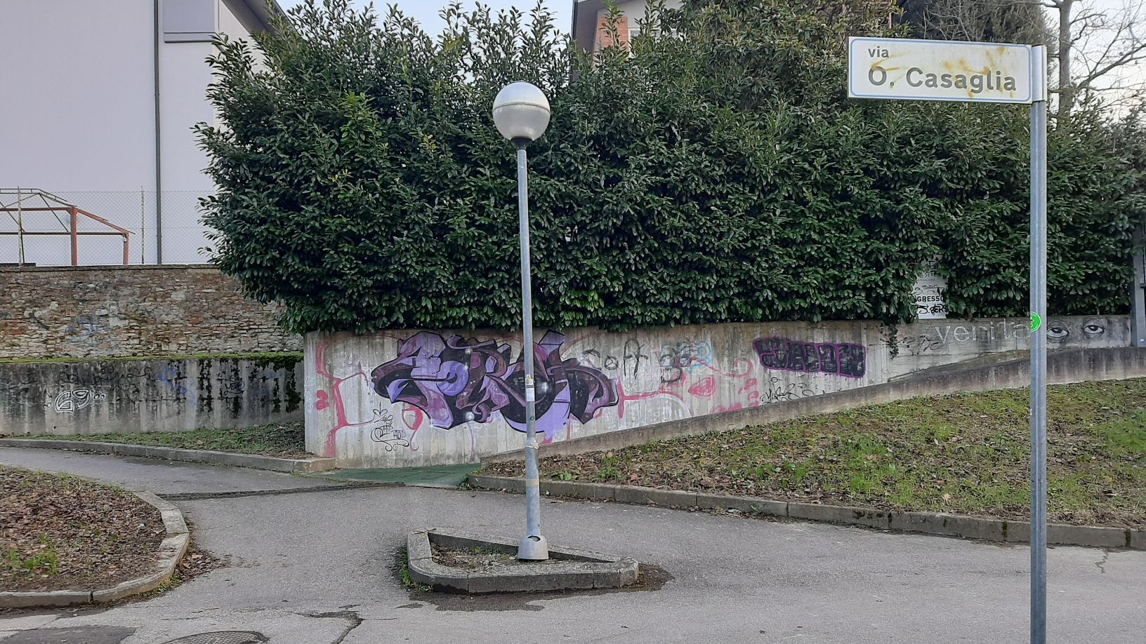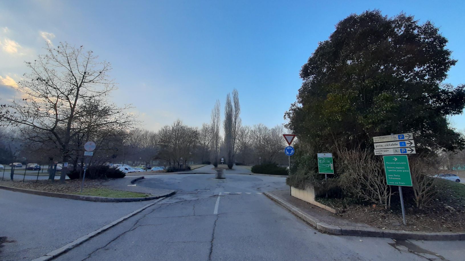 Passate a sinitra della ringhiera verde seguendo il percorso, in via D. Anzani girate a sinitra in direzione "Cammino di Sant'Antonio", alla votra sinistra comparirà la recinzione del parco; all'altezza del cancello di entrata (che sarà alla vostra sinistra) troverete sulla destra la segnaletica