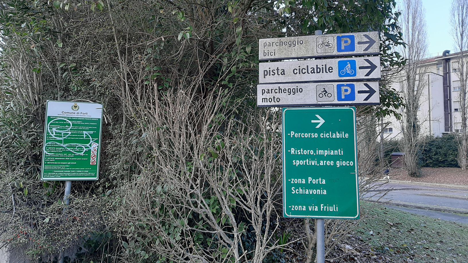 Costeggiate la rocca lasciandovela sul lato destro fino ad arrivare ad una rotonda, passate dal lato opposto della rotonda ed entrate in via Fiume Montone percorrendola tutta fino all'ingresso del Parco Urbano