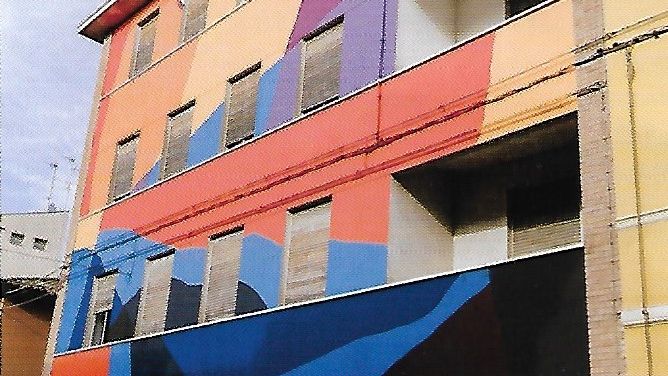 Il suo è un continuo dialogo con le forme e i colori, proporzioni che si fondono con le facciate degli edifici conquistati dai suoi murali.