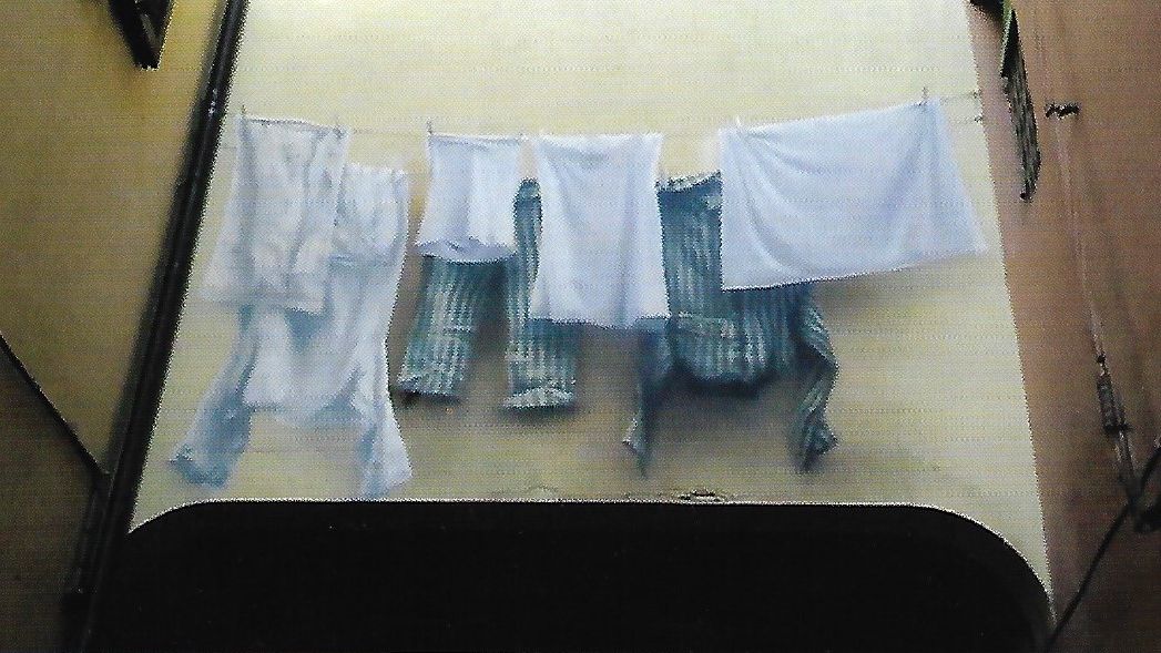 Art 3: Tutti i cittadini hanno pari dignità sociale e sono eguali davanti alla legge, senza distinzione di sesso, di razza, di lingua, di religione, di opinioni politiche, di condizioni personali e sociali. Panni comuni e la divisa da deportato stesi sull'arco di Vicolo San Domenico, l'antico accesso al ghetto ebraico forlivese, per ricordare lo Shoah ed il tragico campo di concemtramento di corso Diaz.